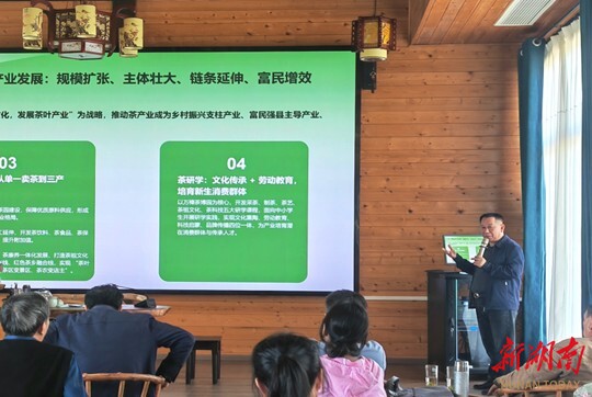 高级农艺师、株洲市茶叶协会副理事长陈柏谊,结合数十年茶叶种植与制作从业经验,带来《手工茶的制茶工艺》专题分享。从鲜叶精准采摘、自然摊晾,到高温杀青、揉捻成型,再到文火干燥、提香赋味,他逐一详解每道工序的技艺精髓,深情讲述手工茶传承路上的坚守与匠心,让在场众人读懂一片茶叶承载的文化担当与匠人精神。国家二级茶艺技师、国家高级评茶师彭仪婕,则以《如何泡好一杯茶》为主题,现场示范温杯、投茶、注水、出汤等标准茶艺流程,细致分享品茶礼仪、茶叶鉴赏技巧,以一盏雅韵茶汤传递中式雅致生活美学,让众人在氤氲茶香与温婉茶艺中,感受中华茶文化的温润内敛与博大精深。交流研讨环节,四县同仁踊跃发言、坦诚交流,围绕神农文化活化利用、茶旅融合深度发展、非遗技艺传承创新等核心话题,各抒己见、碰撞思想。大家畅叙地域情谊,共谋发展良策,一致达成区域联动共识,约定今后深挖共通文化底蕴、高举茶祖文化大旗、共建共享茶产业品牌、共推区域产业升级,让千年神农文化与茶乡振兴事业同频共振、相得益彰。