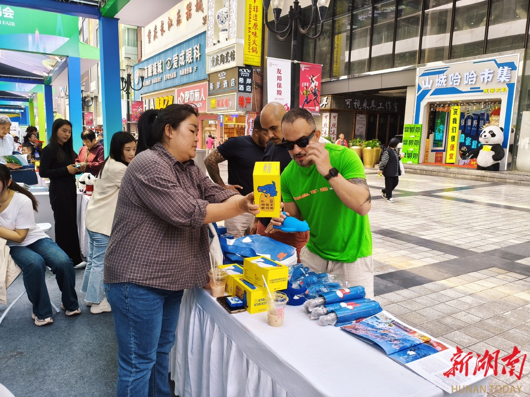 在张家界武陵源展区,以张家界国家森林公园野生猕猴为原型的“马小喽”毛绒玩偶及文创服帽、冰箱贴、好运盲盒等十余类特色文创产品一一展出,引来了不少市民和游客前来参观、咨询或选购。本地游客崔女士说:“张家界不仅风景美好,设计的文创产品也呈现出年轻、趣味、新潮的艺术表达,非常贴近当代年轻消费群体,我准备挑选一些,送给朋友。”