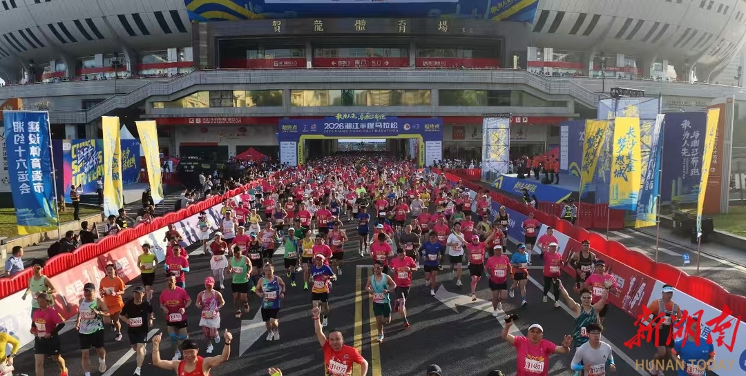 湖南日报·新湖南客户端4月26日讯(记者 肖霄 摄影 范远志)4月26日清晨7时,2026湘江半程马拉松在长沙贺龙体育场南门鸣枪开赛。作为连续成功举办十一届的城市经典路跑赛事,15000名跑者齐聚湘江岸,以奔跑致敬春日,用热爱点燃星城,共同呈现一场兼具专业竞技、红色底蕴与人文风光的城市顶级体育盛会。