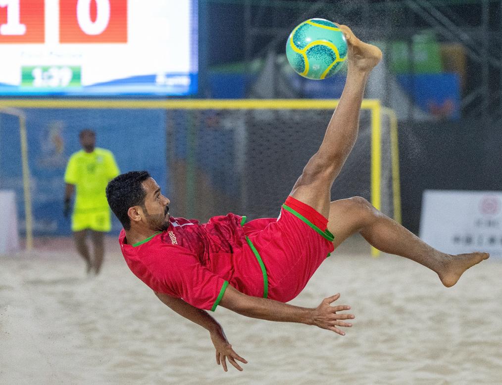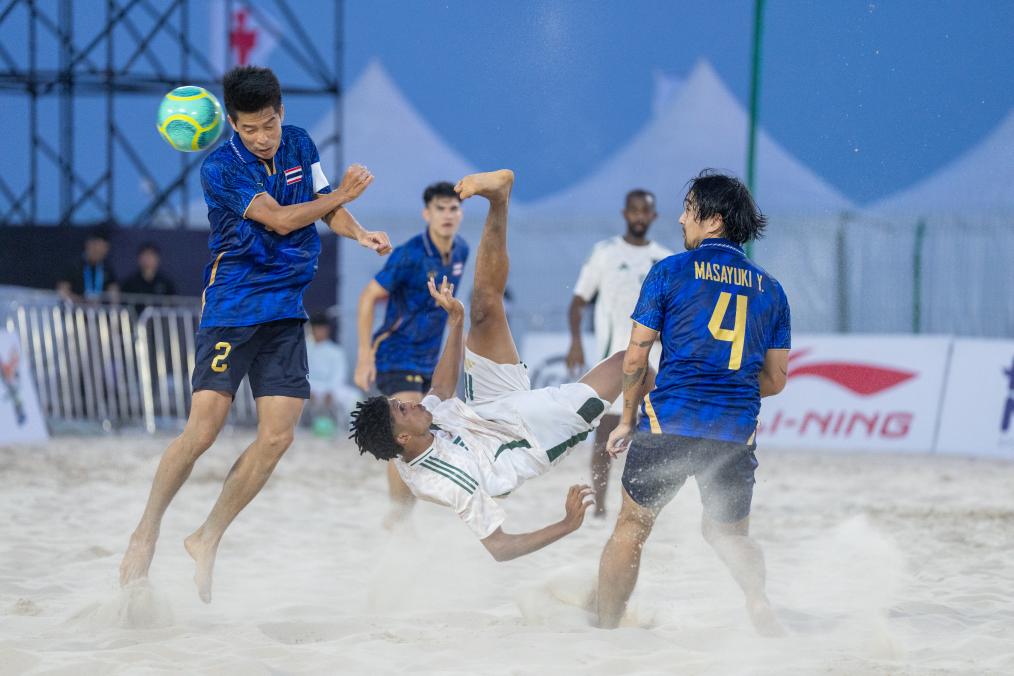 本届亚沙会沙滩足球项目有中国、伊朗、泰国等7支队伍参赛,中国队在25日迎来首战对手巴勒斯坦队,该项比赛金牌将在29日产生。