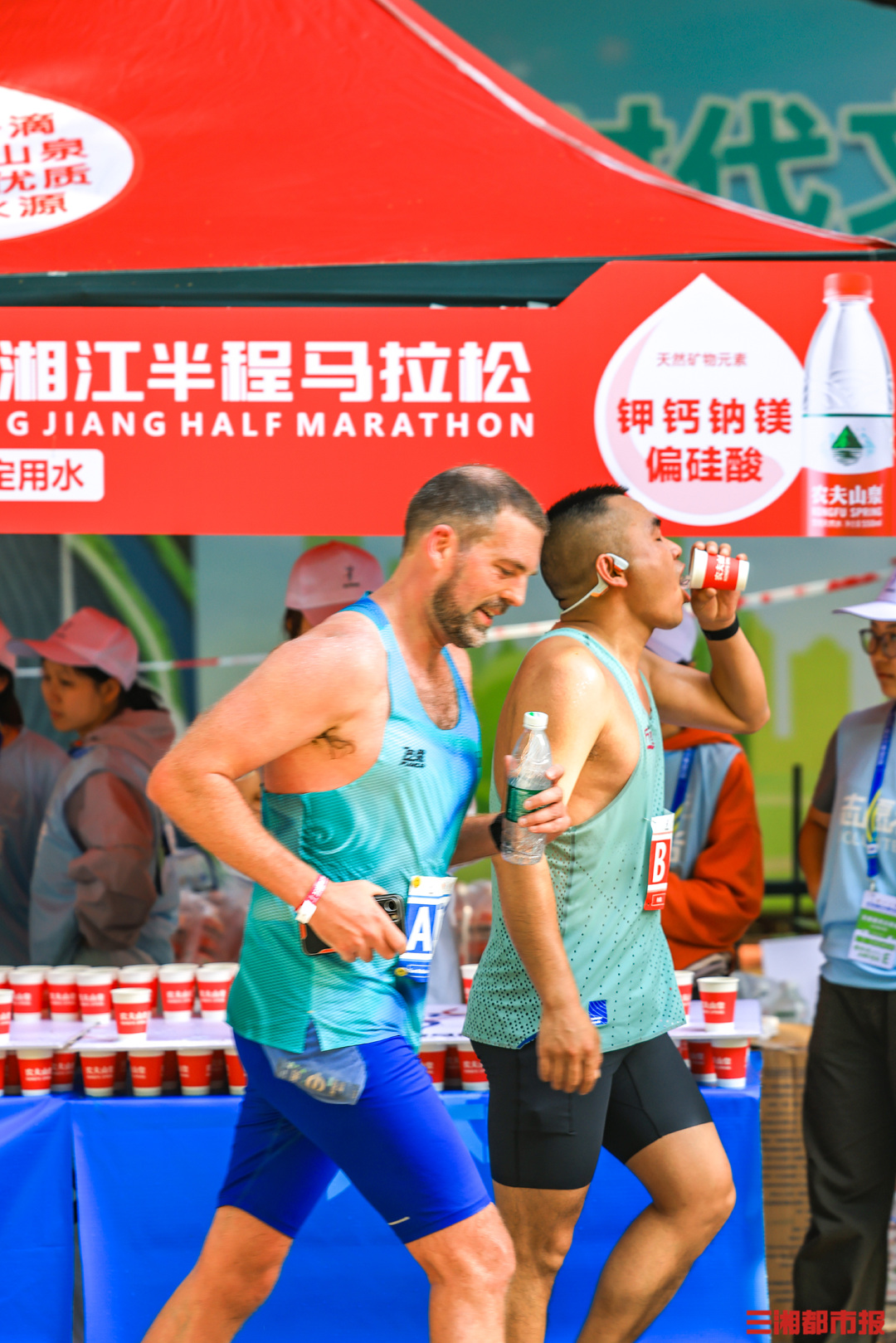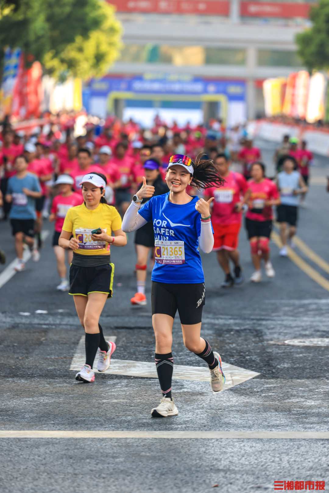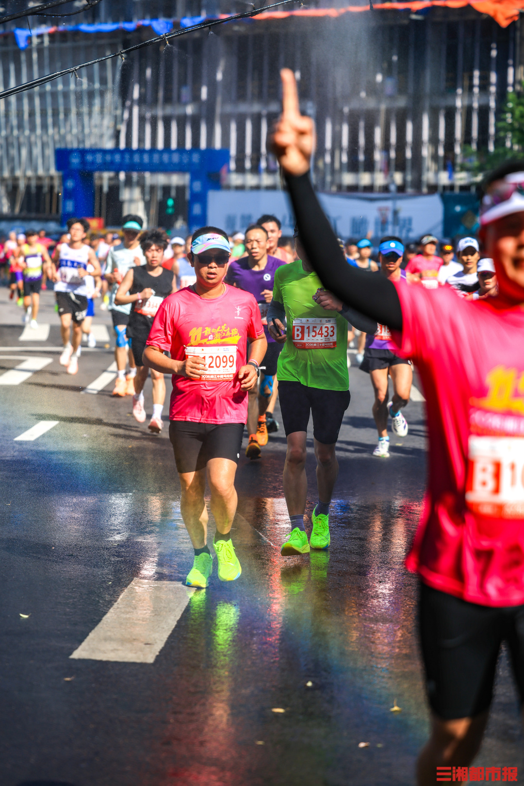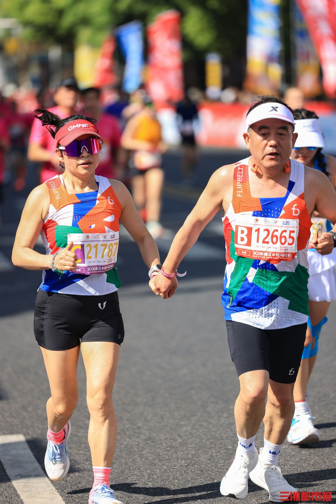 4月26日清晨7时,2026湘江半程马拉松在长沙贺龙体育场南门正式鸣枪开赛。作为连续成功举办十一届的城市经典路跑赛事,15000名跑友齐聚湘江岸,身着粉红色参赛服,以奔跑致敬春日,沿途市民的加油声和他们的步伐同频。在终点,等待跑友们的是祝贺,是鲜花,是掌声。(刘丰 叶竹 摄)