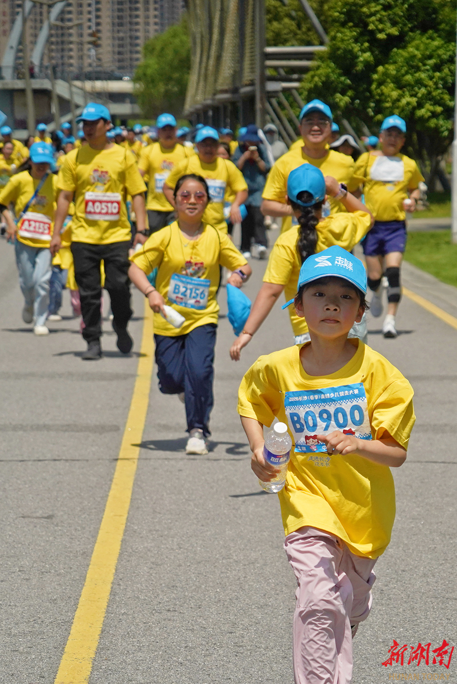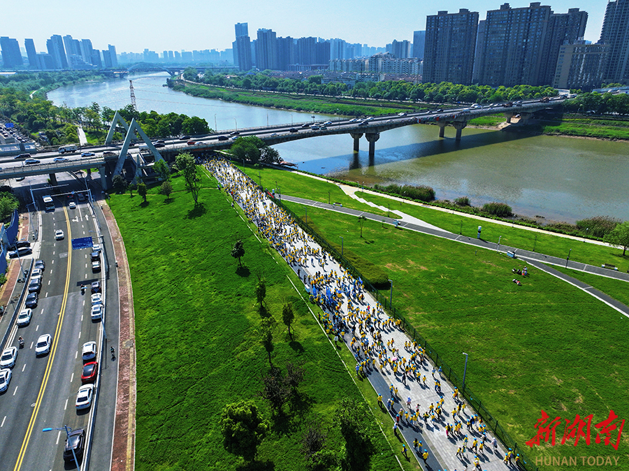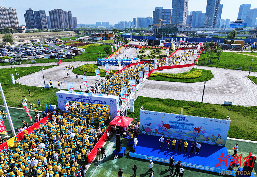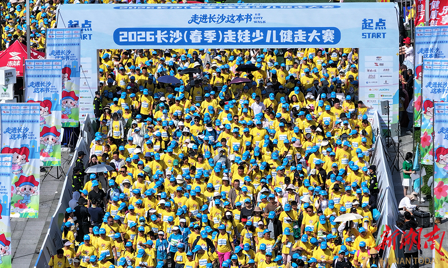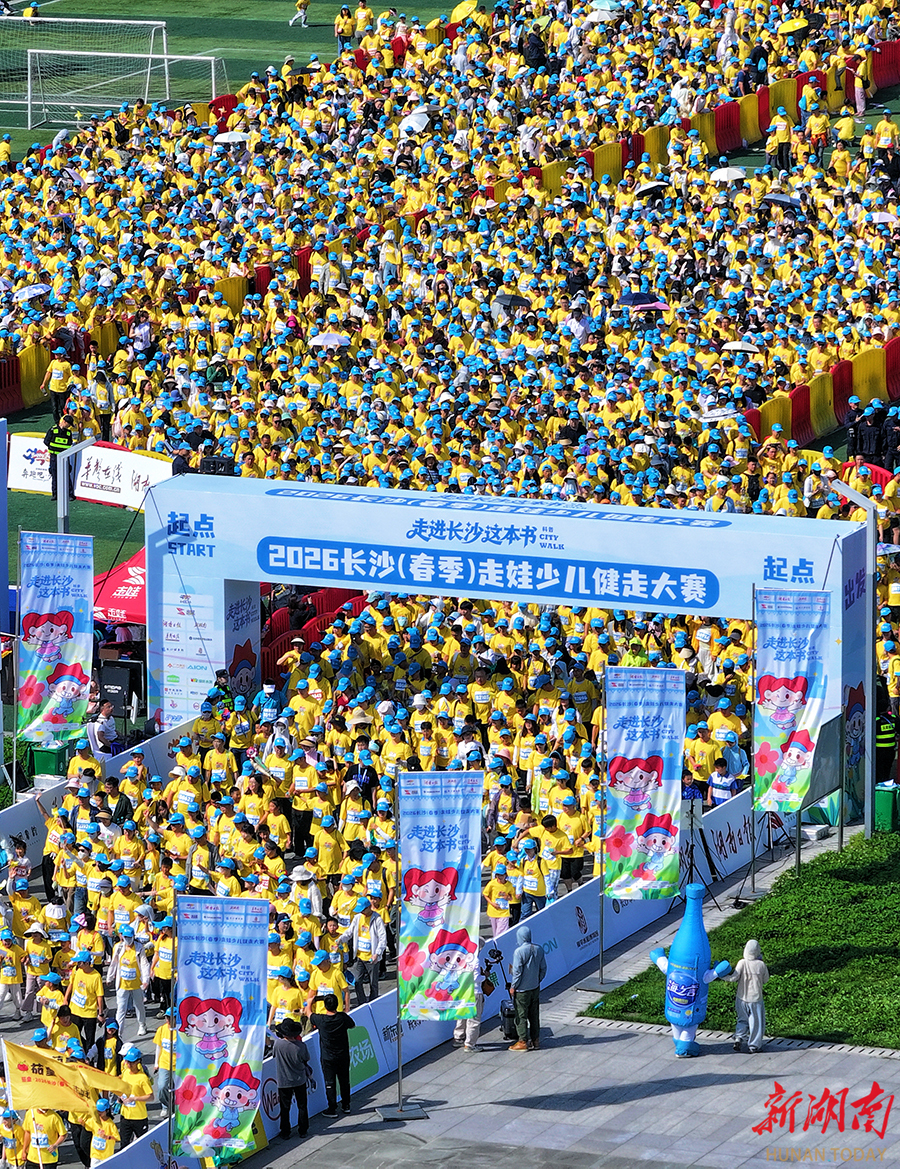4月26日上午,由湖南日报社主办的2026长沙(春季)走娃少儿健走大赛火热开赛。赛事以“走进长沙这本书”为主题, 3500组家庭从鸭嘴公园出发,沿浏阳河步道徒步至隆平水稻博物馆,途经马王堆、汉桥等地,在运动中感受城市人文魅力。湖南日报全媒体记者 徐行 摄