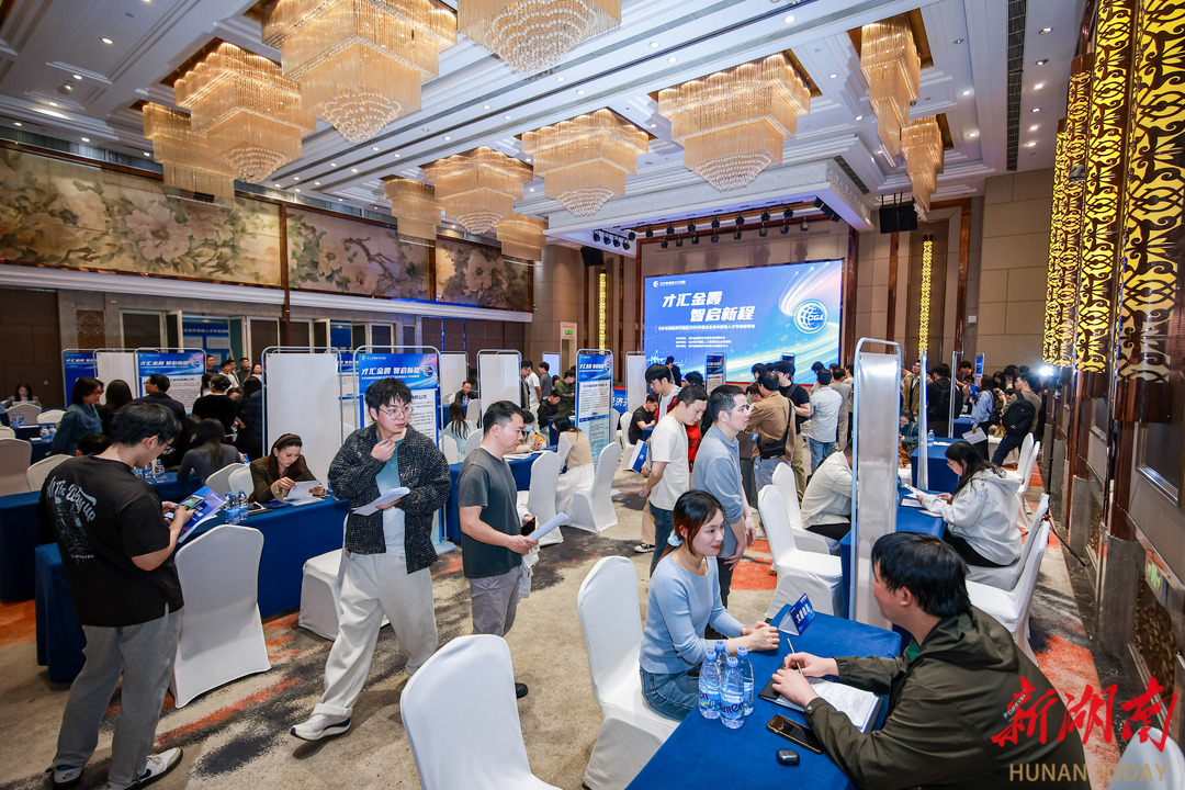 4月25日下午,珠江花园酒店三楼大厅内人头攒动,气氛热烈。长沙金霞经开区2026年重点企业中高端人才专场招聘会正在这里举行。楠菲微电子、新亚胜光电、长重机器等22家园区重点企业携近400个中高端岗位集中揽才,吸引了569名求职者进场对接,现场收到简历684份,达成初步就业意向237人次。这场以“才汇金霞 智启新程”为主题的招聘会,既是园区精准服务企业用工需求的一次集中发力,也是金霞经开区持续优化人才生态的一个生动缩影。