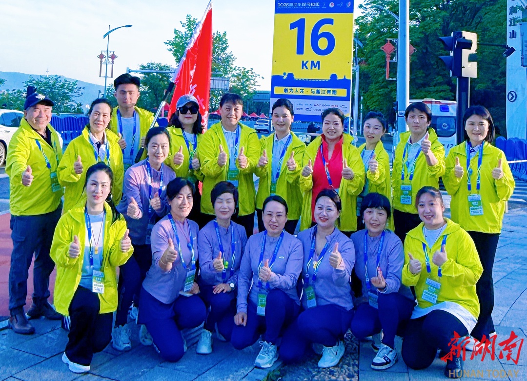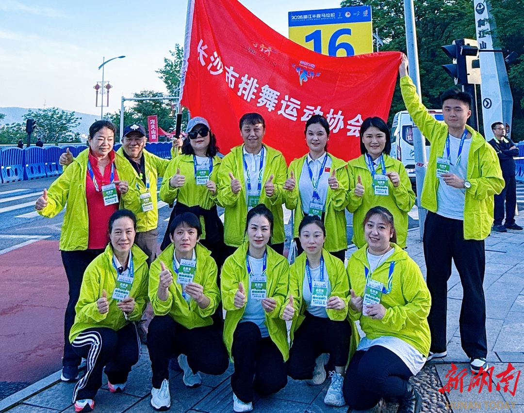 新湖南客户端4月26日讯(记者 胡旻)4月26日清晨7时,2026年湘江半程马拉松在长沙贺龙体育场南门鸣枪开跑。在赛事现场,长沙市排舞运动协会的志愿者们以舞蹈之名,以整齐的阵容、饱满的热情亮相赛道,用嘹亮呐喊与活力舞姿为每一位跑者加油鼓劲,充分展现了协会奉献友爱、向阳而行的青春风采,更用实际行动诠释了体育精神中的协作与温暖。