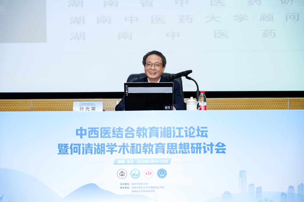 4月25日,中西医结合教育湘江论坛暨何清湖学术和教育思想研讨会于湖南中医药大学举办。国医大师孙光荣、校党委书记戴爱国、湖南医药学院党委书记廖菁、全国政协委员何清湖,副校长刘富林、喻嵘,中国中西医结合学会副会长吕文良出席活动或线上致辞。