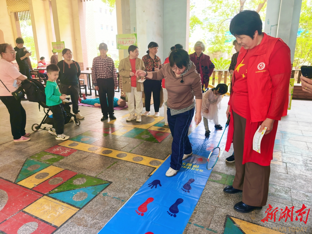 活动现场划分四大功能区域,精准对接居民多元生活需求。健康义诊区里,由长沙市慈善总会联动的医护志愿者为居民免费测量血压、提供专业健康咨询。特色地摊急救培训格外吸睛,志愿者通过现场演示、手把手实操教学,普及心肺复苏等应急急救知识,切实提升居民自救互救应急能力。便民服务区人气十足,志愿者贴心提供免费手机贴膜、磨刀等惠民服务,用心解决居民日常生活中的琐碎难题,以实际行动拉近邻里距离,传递邻里互助温情。趣味游园区成为全场亮点,特意分设成人与儿童专属区域,精心设置“捶丸”“蒙眼敲铜锣”“手脚并用”“蜜蜂采豆”等古今相融的趣味游戏。居民亲子结伴、邻里组队踊跃参与,在欢乐闯关间乐享休闲时光,既锻炼肢体协调能力,又在欢声笑语中增进邻里情谊,营造出和睦融洽的社区氛围。