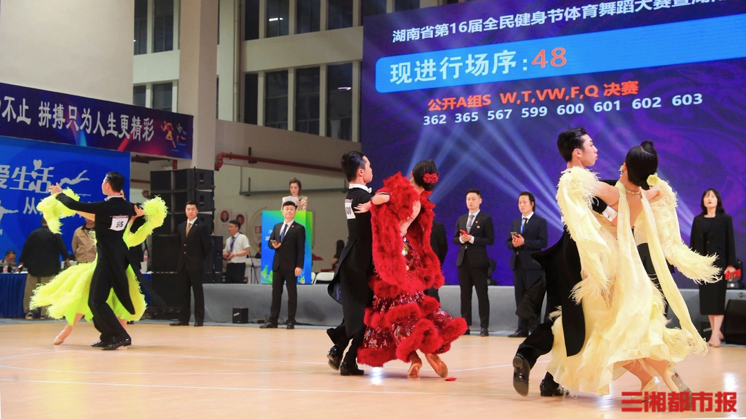 三湘都市报·新湖南客户端4月26日讯(全媒体记者 叶竹 通讯员 廖玉倩)来自三湘四水的近800名体育舞蹈爱好者齐聚“洞庭之心”,带来华尔兹、探戈、伦巴、桑巴等舞种的精彩对决,点燃全民运动热情,4月25日至26日,“潮涌大通湖 运动新潇湘”湖南省第十六届全民健身节暨体育舞蹈大赛在益阳市大通湖区文体中心举行。