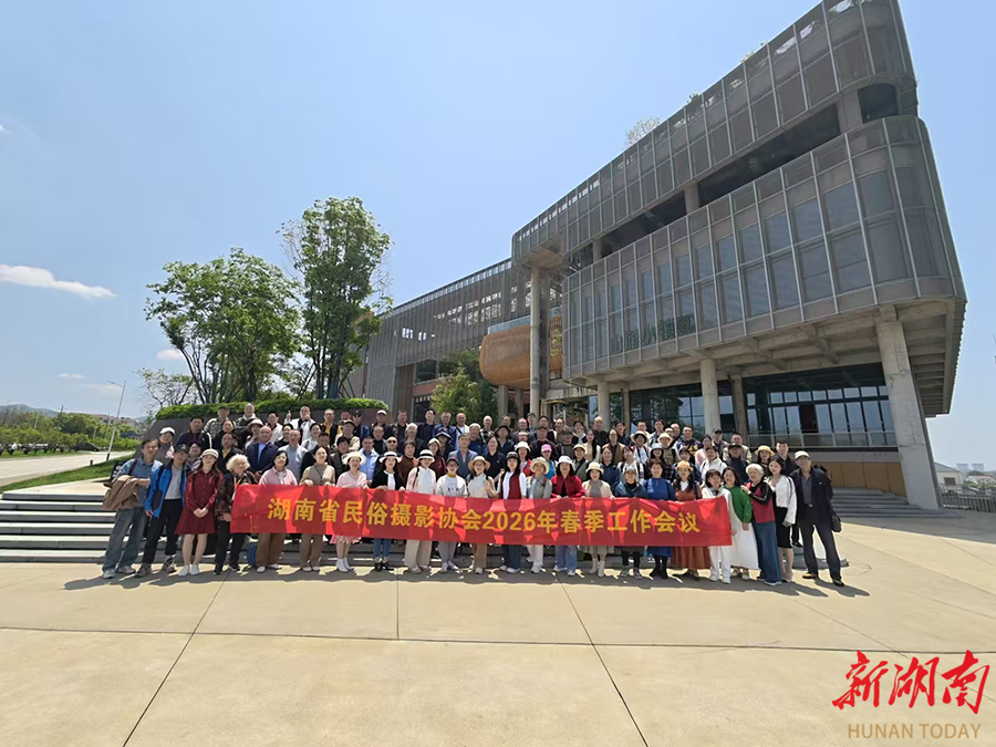 新湖南客户端4月26日讯(通讯员 胡立强 张屹)4月25日,湖南省民俗摄影协会2026年春季工作会议在平江山润小镇举行。协会主席团、理事、会员及嘉宾等百余人参会,会议总结过往工作、表彰先进、部署年度任务,并落实基地共建合作,聚力推动湖南民俗摄影与文旅、乡村振兴深度融合发展。协会会长、党支部书记陈兆忠致辞并作总结讲话。他表示,过去一年,广大会员深入三湘大地,聚焦非遗民俗、传统节庆、市井烟火等开展创作,产出大批优质影像作品,有效传播了湖南民俗文化魅力。他勉励全体会员坚守初心、创新表达,以光影赋能文旅发展。