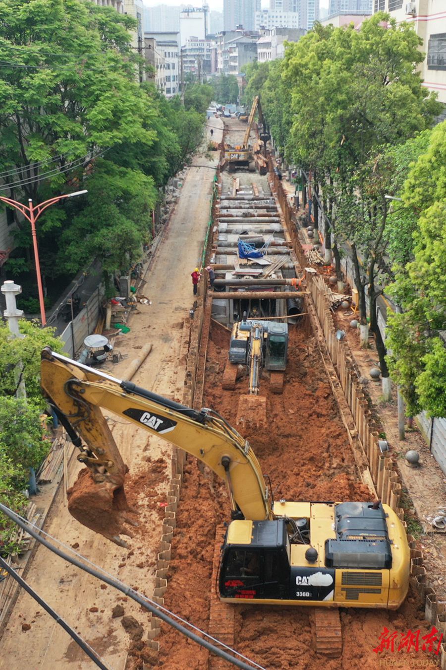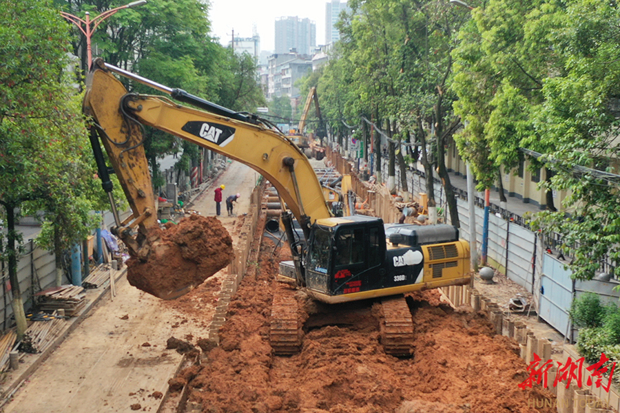 4月26日,怀化市鹤城区锦溪北路,地下排水(雨污分流改造)工程持续推进。近年来,该市将雨污分流改造、管网升级与河道清淤等进行系统治理,着力改善太平溪水质,让水更清、城更美,持续优化人居环境。 柴均林 摄(湖南图片库)