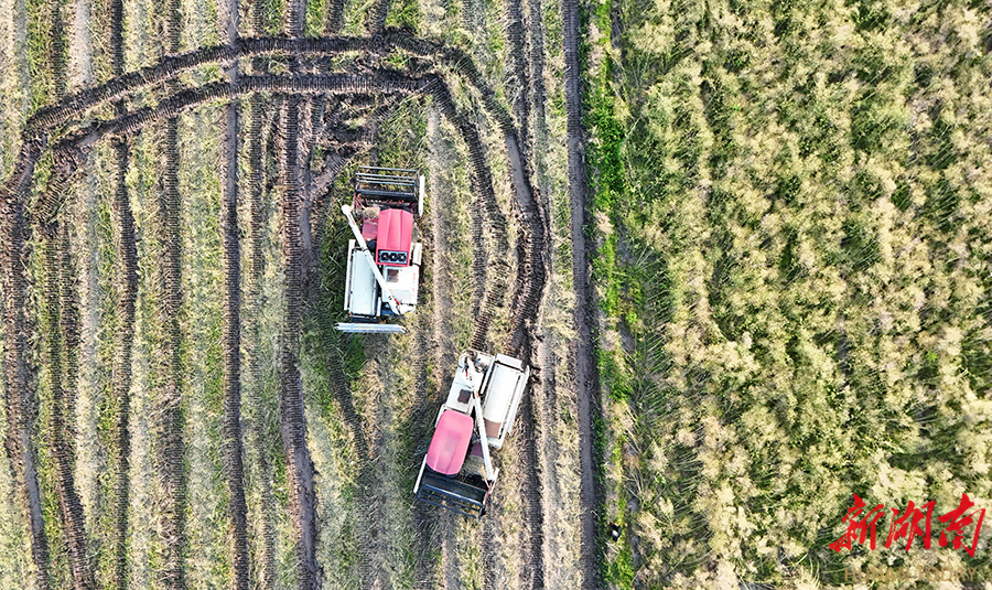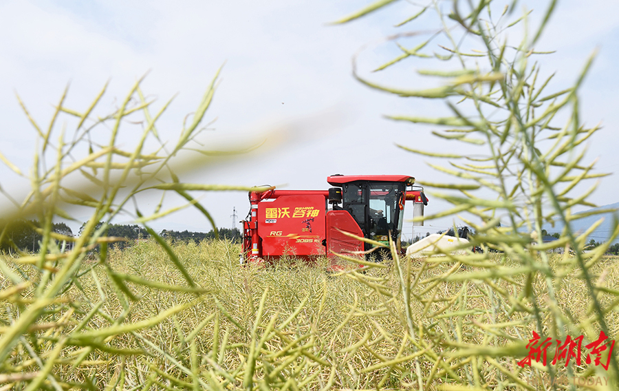 4月26日,江永县夏层铺镇夏层铺村,村民驾驶农机收割油菜。当前,该县13万亩油菜迎来收获季,农户们正抢抓农时开展机械化收割,田间呈现一派繁忙景象。 田如瑞 摄(湖南图片库)