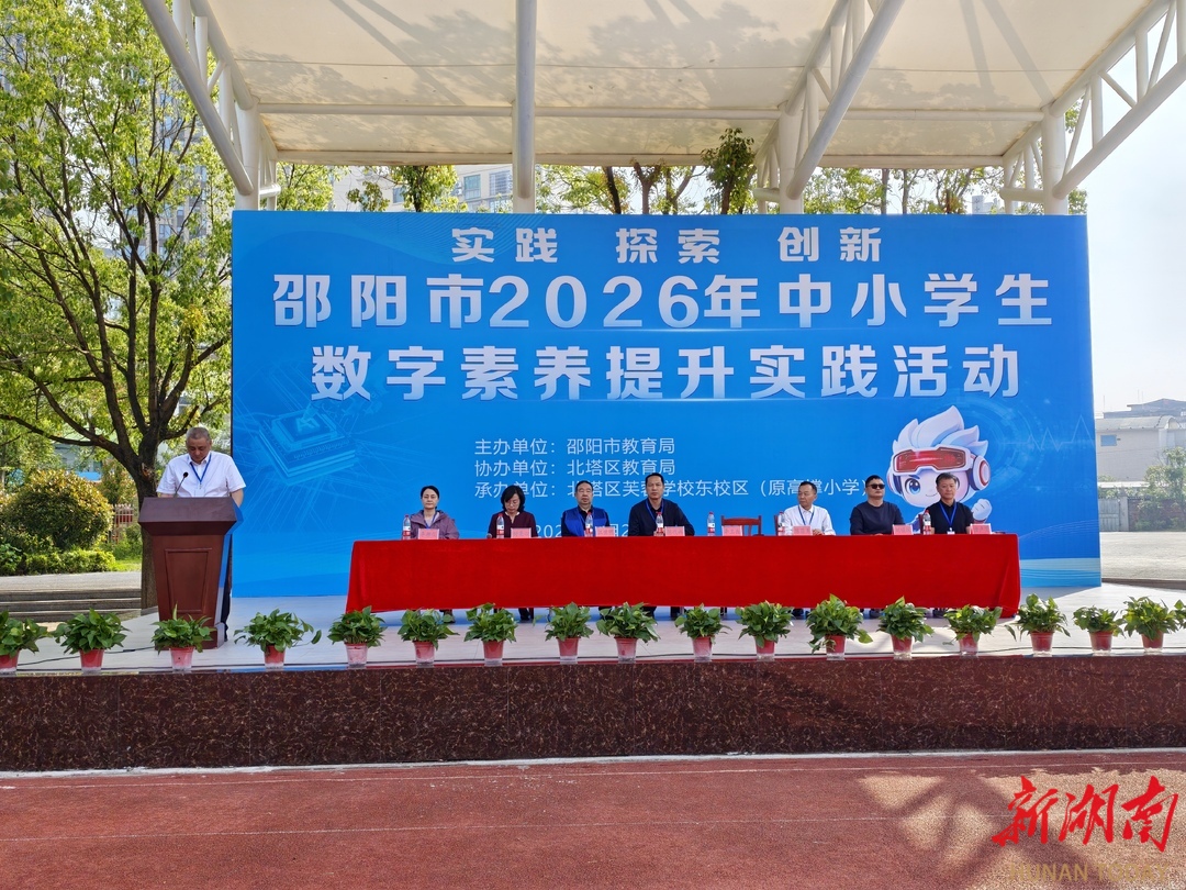 科教新报·新湖南客户端讯(通讯员 唐甜) 智能机器人在赛道上灵活穿梭,机器人精准完成指定任务,同学们全神贯注地编写程序、调试设备……4月25日,邵阳市2026年中小学数字素养提升实践活动在北塔区芙蓉学校东校区开赛。来自全市各中小学校的参赛队伍齐聚赛场,围绕多个科创项目展开激烈角逐与深入交流。