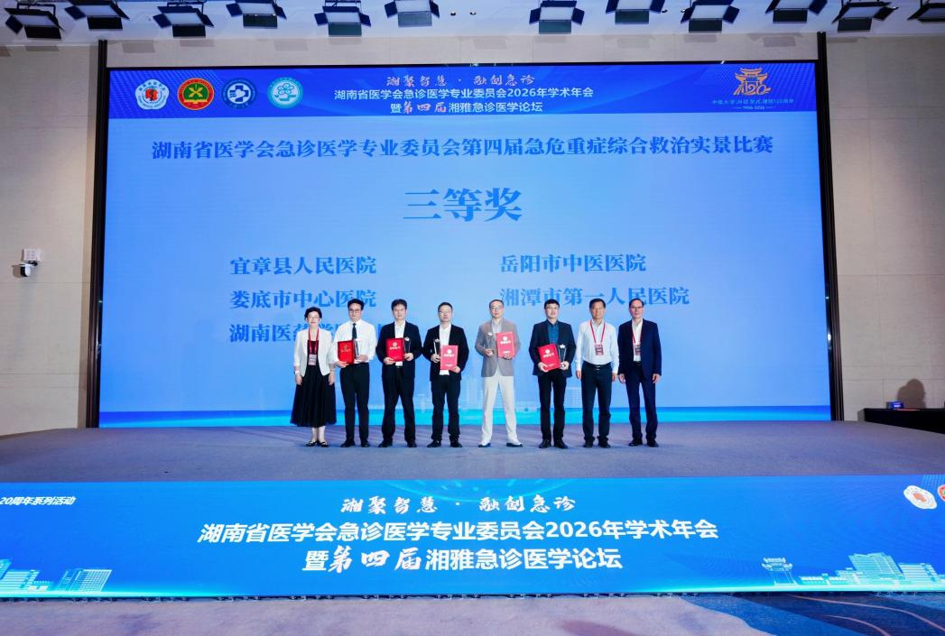 大众卫生报·新湖南客户端4月27日讯(通讯员 谭媛 陈纯)近日,在湖南省医学会急诊医学专业委员会2026年学术年会暨第四届湘雅急诊医学论坛——急危重症综合救治实景比赛中,岳阳市中医医院急危重症中心代表队从全省16支精英队伍中脱颖而出,斩获三等奖。