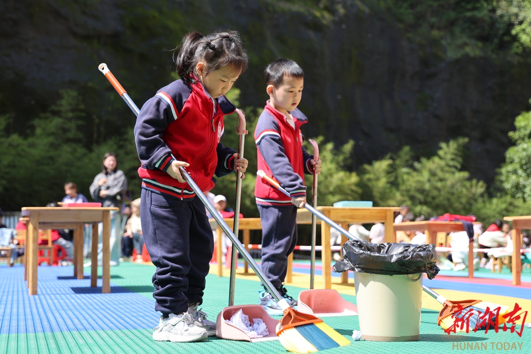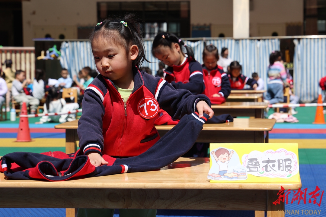 4月24日,通道侗族自治县盛世侗乡幼儿园,幼儿在参加生活自理能力大赛。 当日,该园举办“幼儿生活自理能力大赛”,设置叠衣服、穿鞋子、扫地、玩具分类等项目,萌娃们在趣味比拼中动手实践,培养劳动意识,收获成长快乐。