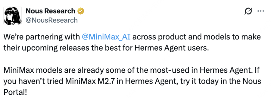 4月16日,MiniMax推出MaxHermes,仅需10秒就能“云养马”。更关键的是,MiniMax还将旗下最新大模型M2.7与Hermes深度结合,据官方数据,M2.7是“养马”生态中使用量最高的模型之一。