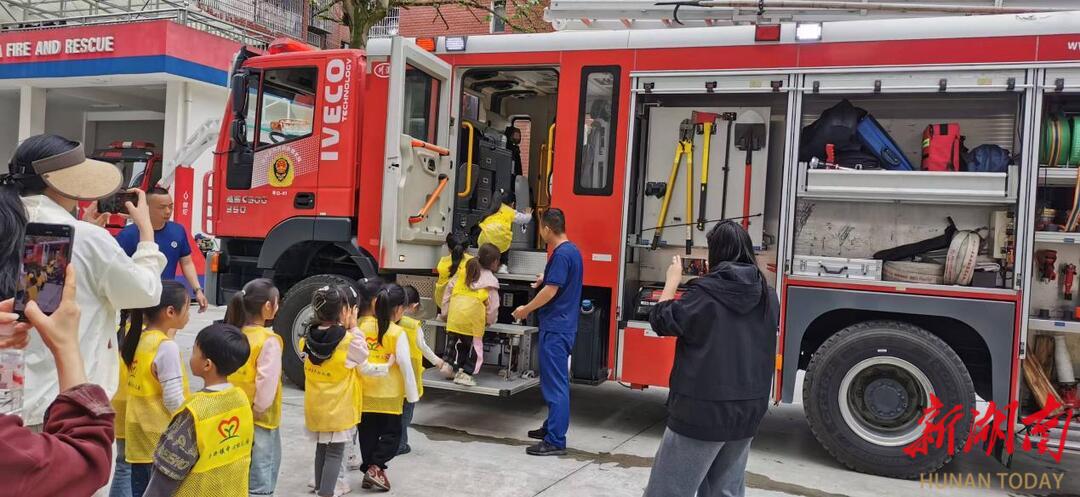 科教新报·新湖南客户端讯(通讯员 梁秋庭)4月24日下午,安化县平口镇中心幼儿园组织大班幼儿走进平口镇消防站,开展沉浸式消防安全实践研学活动,让孩子们零距离接触消防、认识消防、学习消防。