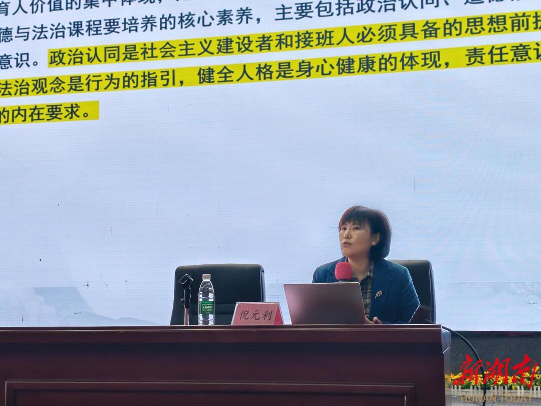 培训首日,湖南省教科院基教所德育研究中心主任倪元利率先开讲。她以《基于教材的教学优化——以八年级道德与法治教材为例》为题,结合2023年国家义务教育质量监测茶陵县(德育状况)结果报告,深入浅出地剖析了当前教学中存在的痛点与难点。她指出,道德与法治课程承载培育学生政治认同、道德修养、法治观念、健全人格与责任意识的使命,教师需跳出知识点讲授,摒弃照本宣科模式,实现从“教教材”到“用教材教”的转变,构建“源于生活—高于生活—回归生活”的教学逻辑,让思政课真正“活”起来。