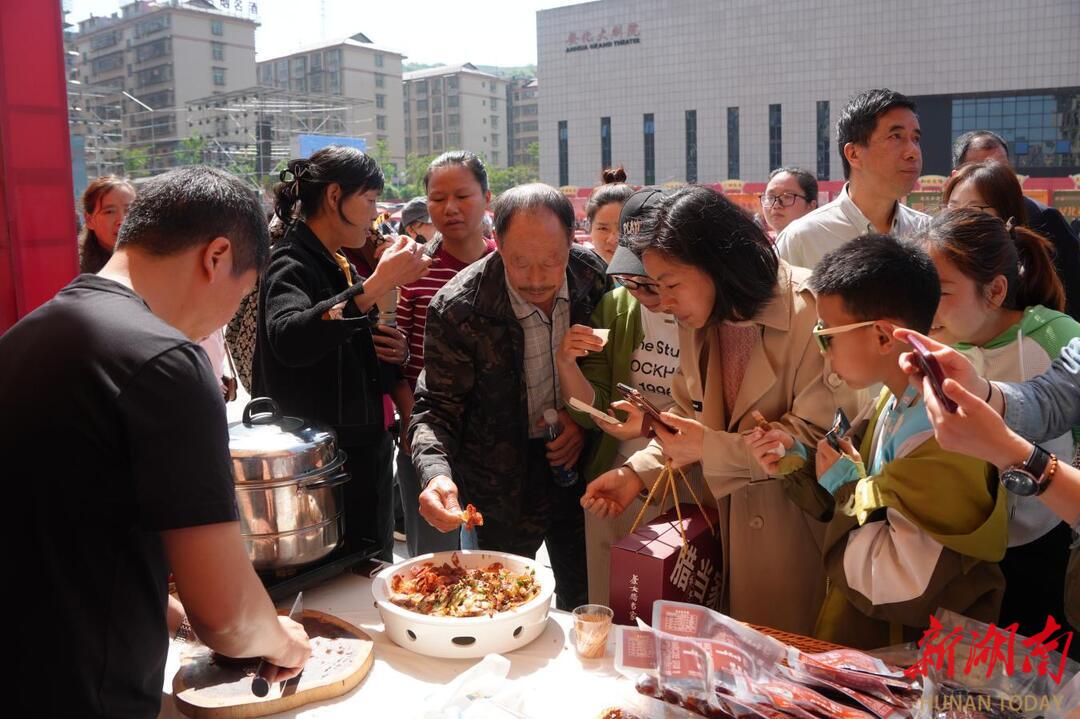 为提升群众参与感与体验感,活动现场安排了全天候的文艺表演,涵盖安化本土歌舞、传统戏曲、民俗技艺展示等多种形式,生动演绎了梅山文化的独特魅力。与此同时,主办方设置了多轮抽奖环节,奖品包括本地特色产品礼包、消费券等,现场欢呼声此起彼伏,氛围热烈高涨,不少市民表示:“既能吃好喝好,又能看表演、抽大奖,这样的活动希望年年都有。”