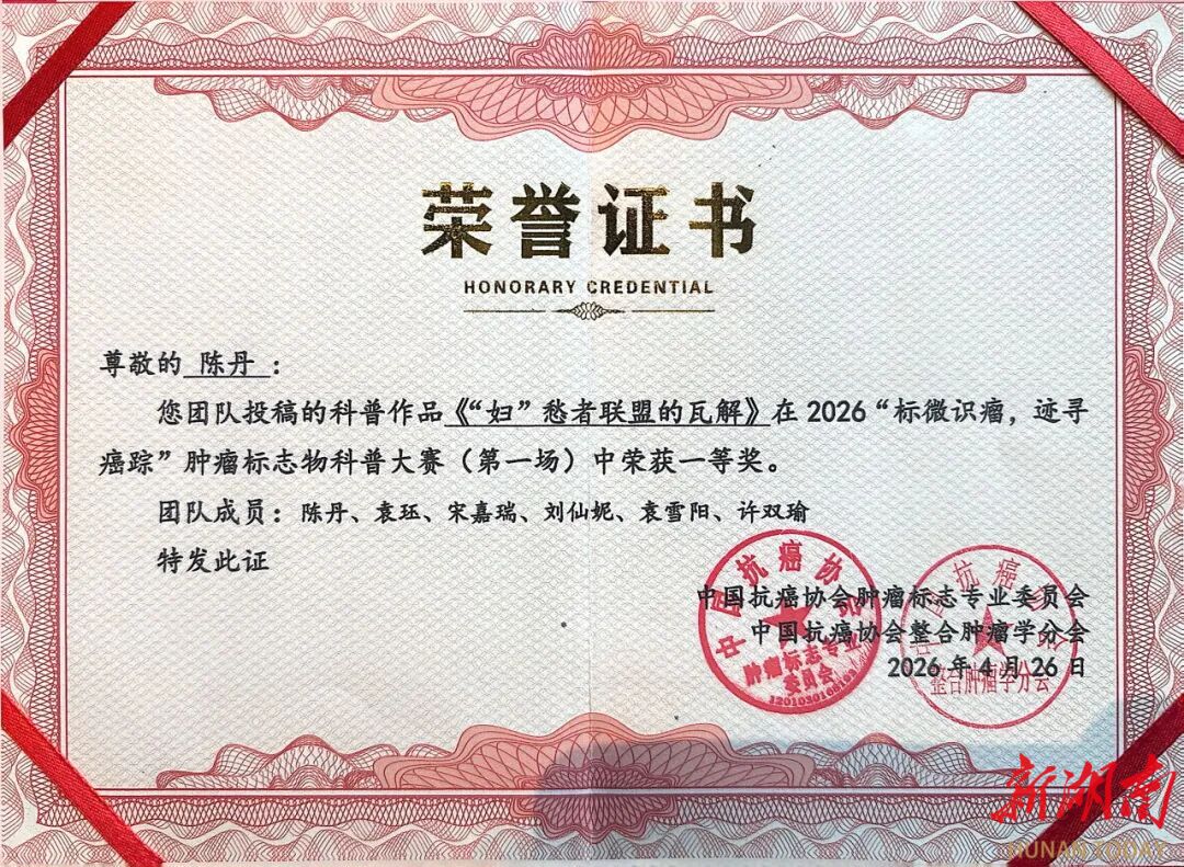 4月26日,在中国抗癌协会主办的全国肿瘤标志物科普大赛上,湘潭市中心医院妇科团队原创舞台剧作品《“妇”愁者联盟的瓦解》,凭借创新的表达形式与扎实的医学内核,从全国356件参赛作品中脱颖而出,喜获全国一等奖。