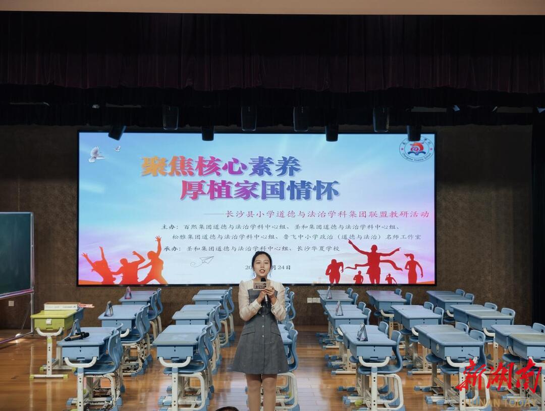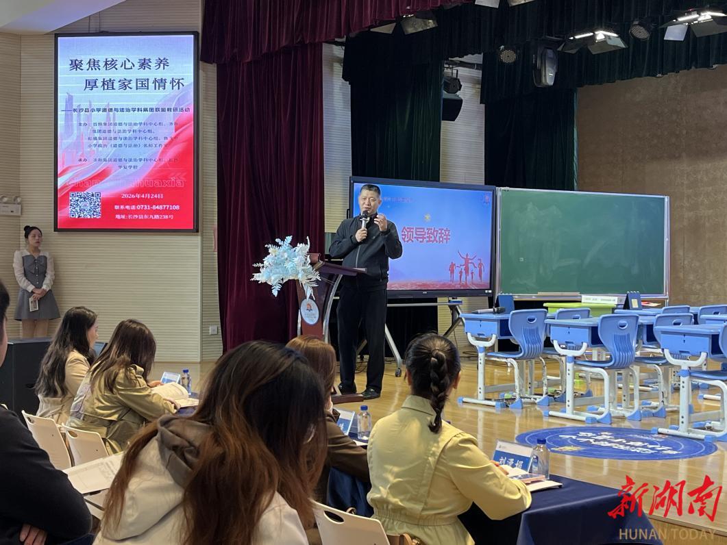 新湖南客户端4月27日讯(通讯员 刘君 武利军)为梳理统编版小学《道德与法治》教材中与“家国情怀与身份认同”主题的教学内容,提炼“家国情怀与身份认同”跨单元教学主题框架,开发基于真实情境的跨单元主题教学案例,设计指向核心素养的评价工具,增强学生对伟大祖国、中华民族、中华文化、中国共产党和中国特色社会主义的认同感与归属感,4月24日,长沙县小学道德与法治学科圣和、百熙、松雅集团、鲁飞工作室(小学)团队联盟联合进行的2026上期第一次线下活动在长沙市华夏实验学校开展,长沙县40多名思政骨干教师参与本次教研活动。