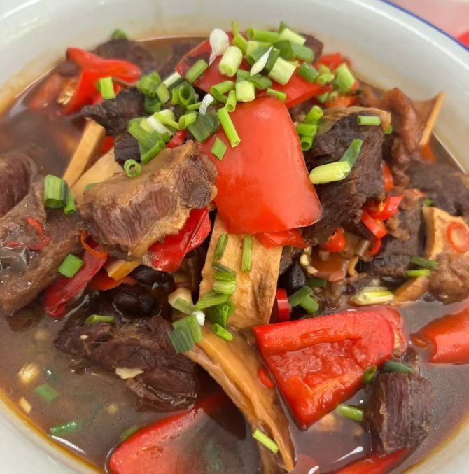 招牌炖牛腩是店里的人气王,牛腩用甜红椒慢炖,炖到软烂入味,肉里锁满了鲜美的汁水,就连里面的甜椒也吸饱了汤汁,口感软糯香甜,不少食客吃完,还会打包汤汁回家煮面。