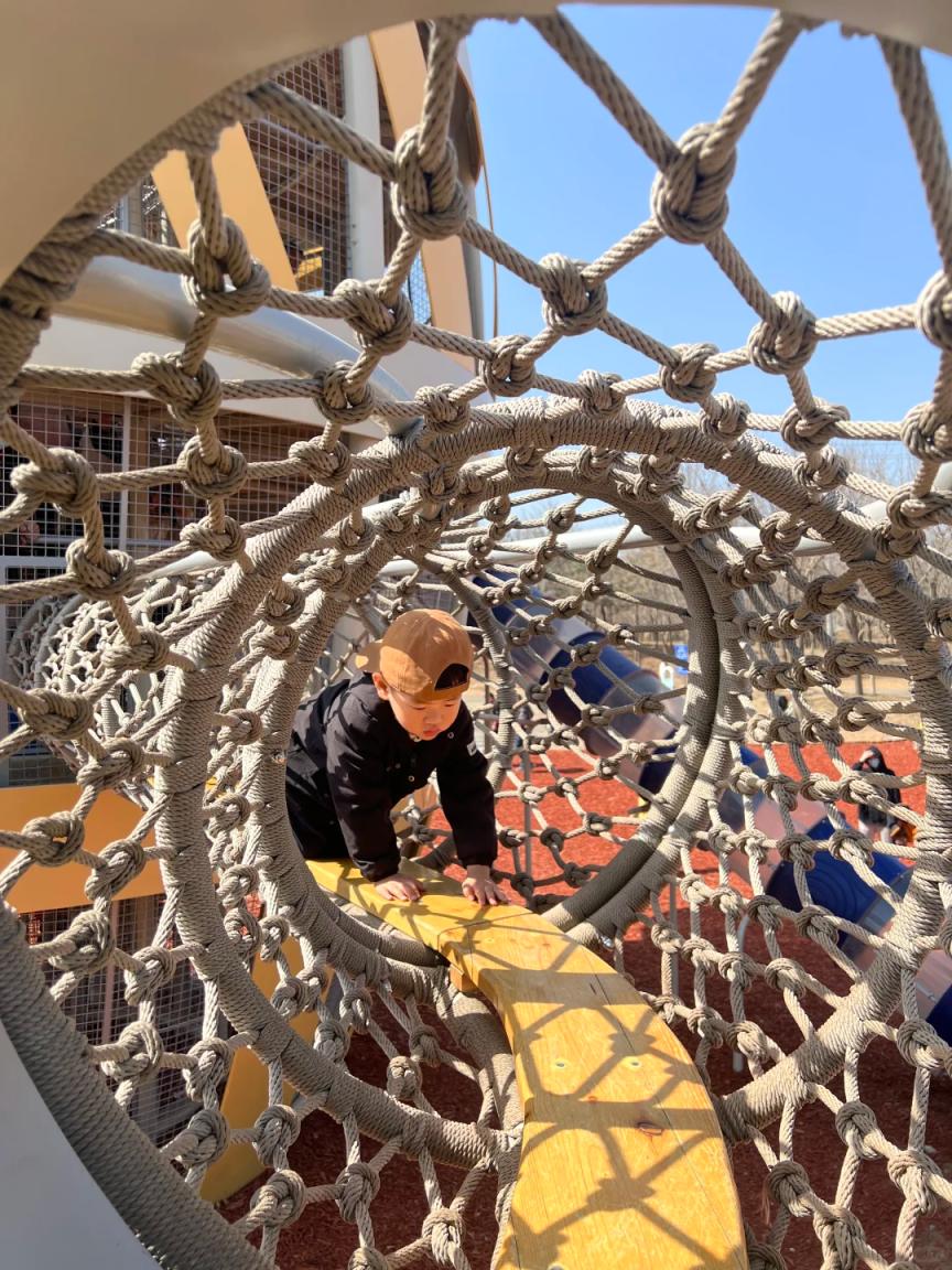 需要儿童通过攀爬网