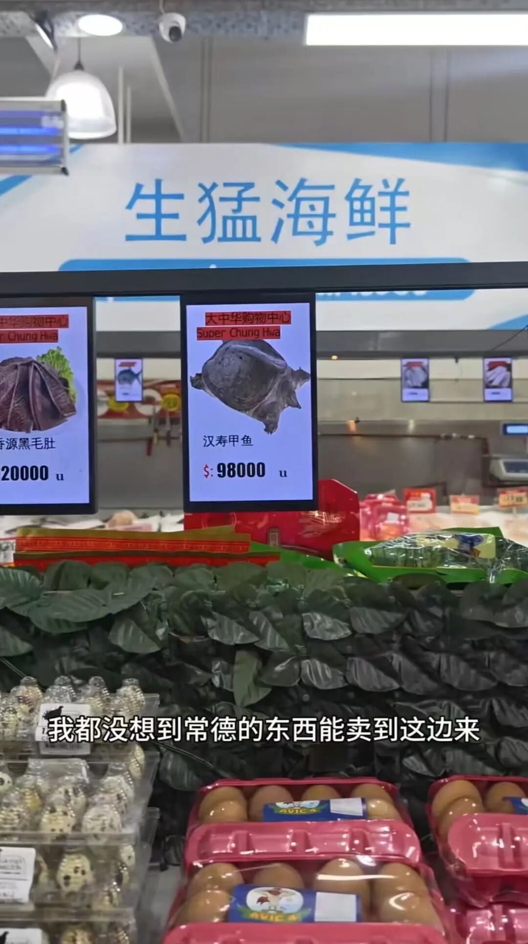 4月27日,潇湘晨报·晨视频记者与曾先生取得联系,曾先生介绍,当天是在中华超市看到了在售卖的“汉寿甲鱼”,“中国产品还是很多,老干妈方便面,到处都有卖的,像这种精确到汉寿县的第一次看到,而且又是甲鱼。”
