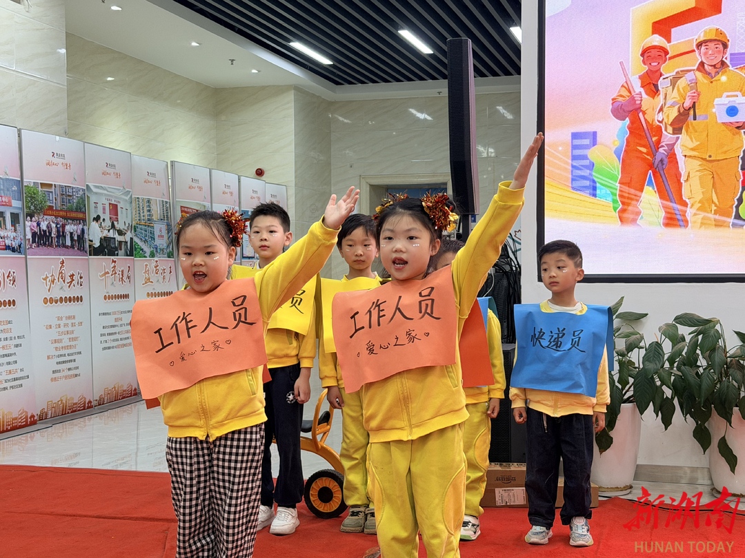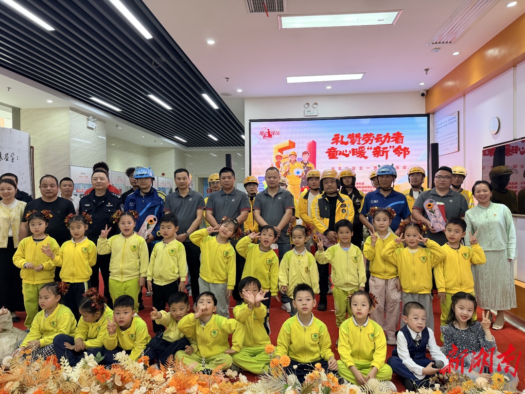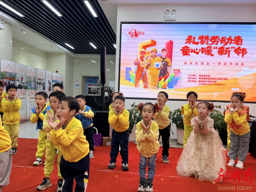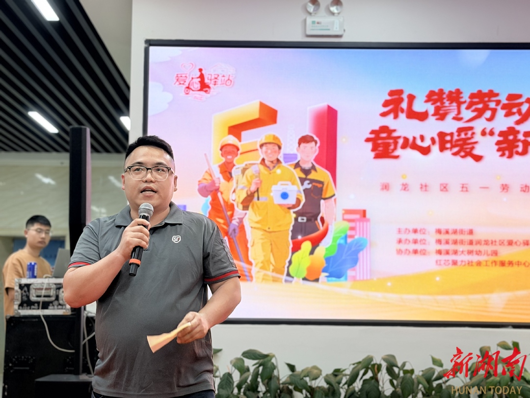 4月27日下午,梅溪湖街道润龙社区党群服务中心内,掌声与童声交织,一场以“礼赞劳动者 童心暖‘新’邻”为主题的“五一”主题活动温情上演。此次活动由梅溪湖街道主办,润龙社区爱心驿站承办,联合梅溪湖大树幼儿园、红芯聚力社会工作服务中心,专门为辖区快递小哥、外卖骑手等新就业群体送上专属节日关怀。