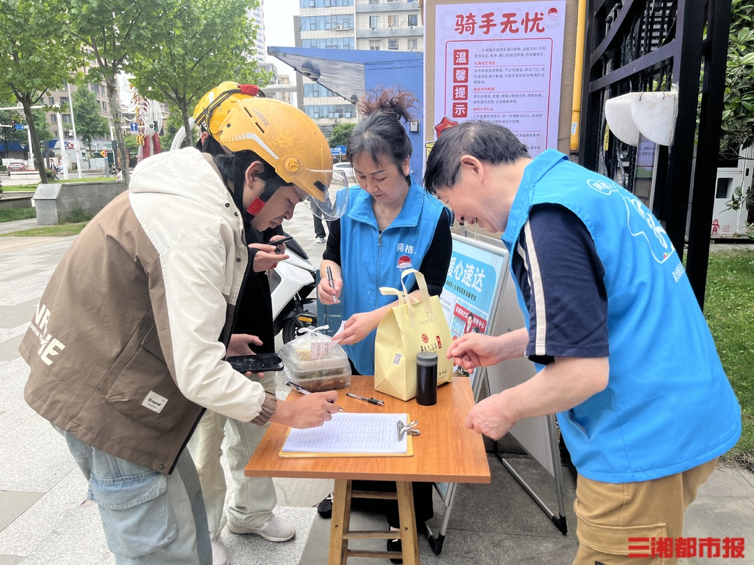 将餐食放到小区代送点,填好订单信息转身就走,全程不到一分钟。助他节约送餐时间的,是开福区清水塘街道芙蓉路社区推出的“暖心速达”中转便民服务。成凡坦言,“这项服务给我们外卖骑手帮了大忙,提升了送餐效率。”