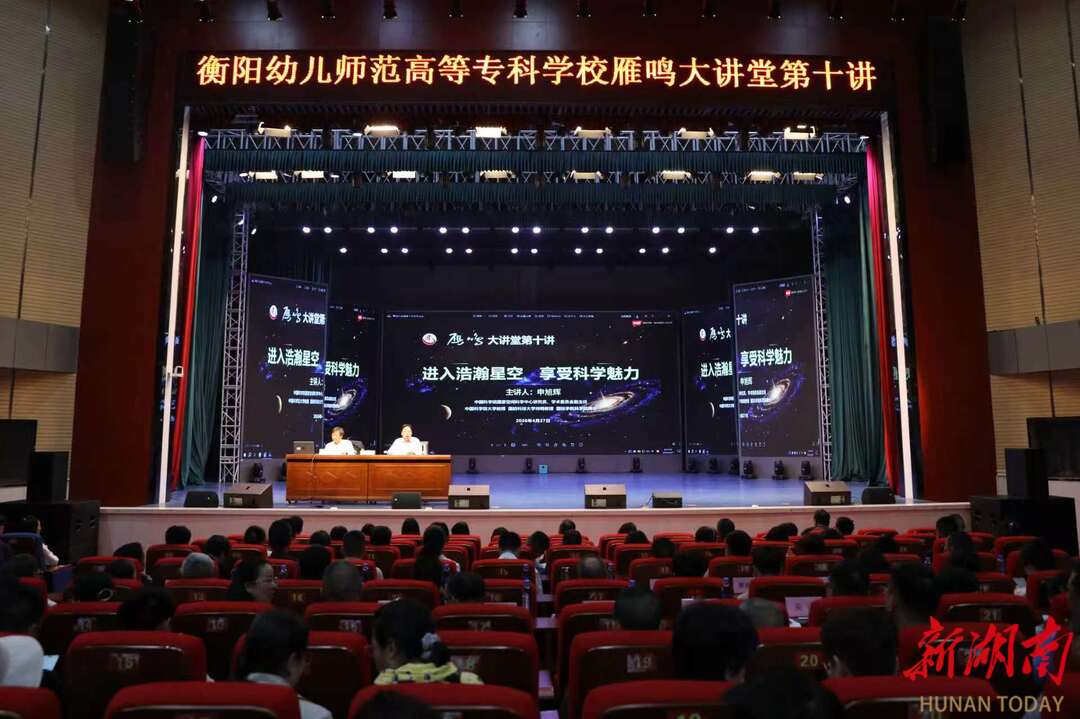湖南日报·新湖南客户端4月27日讯(通讯员 邓越宇 摄影 邹淑婷 唐民杰)4月27日上午,衡阳幼儿师范高等专科学校“雁鸣大讲堂”第十讲开讲。国际宇航科学院院士、中国科学院国家空间科学中心研究员、张衡一号电磁监测试验卫星工程首席科学家申旭辉应邀作《进入浩瀚星空,享受科学魅力》专题讲座。该校领导班子成员、师生代表共743人参加学习。