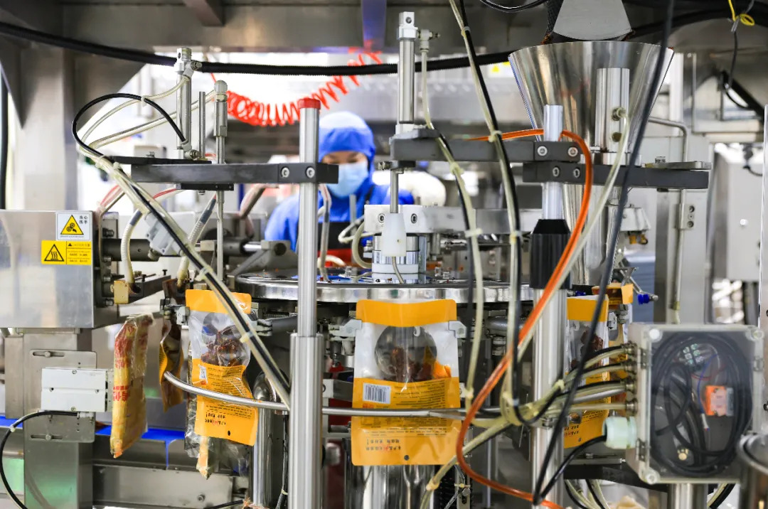 小鸭仙酱板鸭机器自动灌装生产线。受访者供图