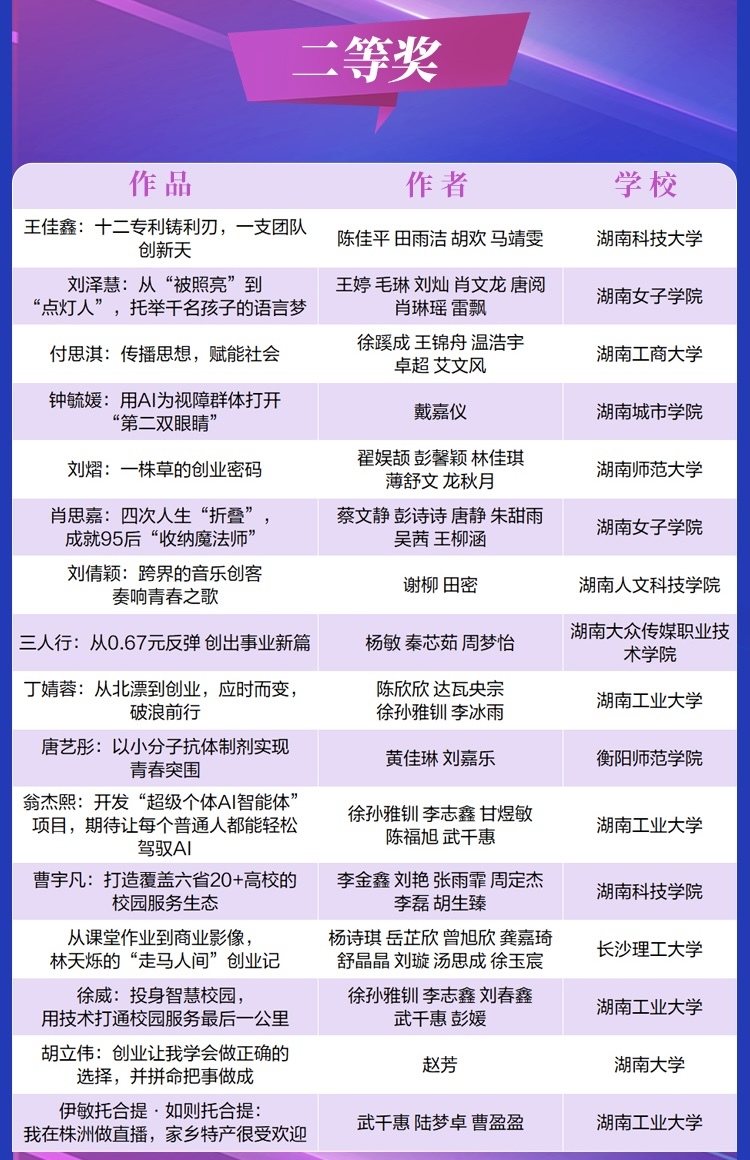 本次活动以“让青年报道青年,使青年影响青年”为核心理念,是湖南日报社在省委宣传部、省教育厅、团省委等单位指导下,为深入贯彻我省支持大学生创新创业部署而打造的校媒协同实践平台,采用“媒体+高校”的校媒双导师机制,推出“学长创客厅”大型UGC征集,全省学子用镜头与笔触记录身边学长学姐敢闯会创的奋斗故事。72期作品覆盖数字文创、新消费、教育培训、精密制造、生命健康校园服务、智慧农业、政企服务等多个领域,成为党媒与高校联动服务中心大局的生动实践。