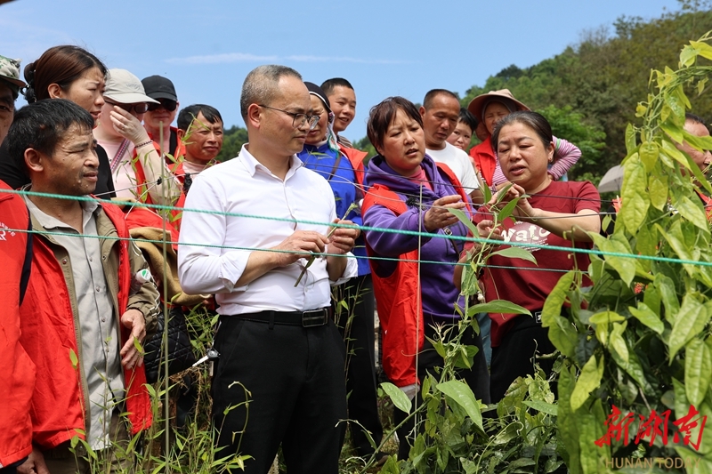 4月25日,通道侗族自治县县溪镇多星村,农技员向残疾学员传授中药材种植、管护技能。近年来,该县结合特色产业需求,针对农村残疾人就业难题,联合培训机构开展“订单式”实用技术培训,帮助残疾人掌握一两门实用种养技能,增强自主发展能力,拓宽增收渠道。李尚引 摄(湖南图片库)