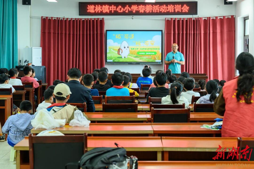 道林镇中心小学学生在上水稻种植科普课。焦湘平 摄