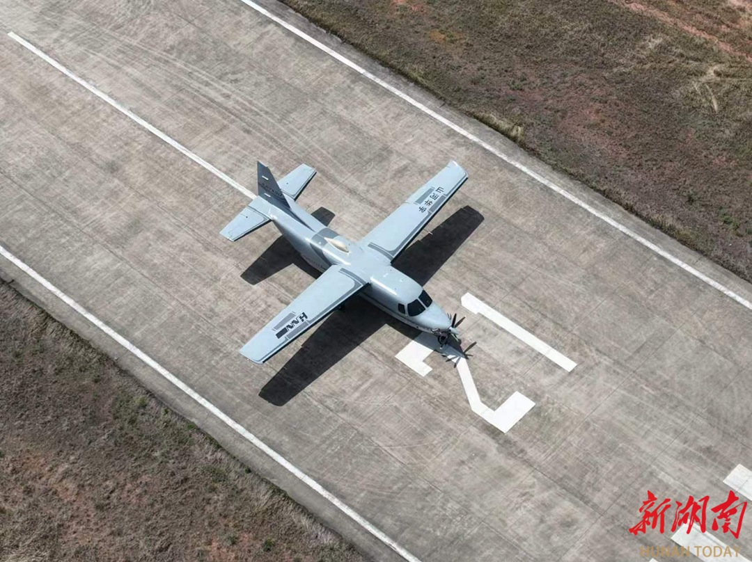 今年4月4日,株洲芦淞机场,使用兆瓦级氢燃料航空涡桨发动机的大型无人机腾空而起。