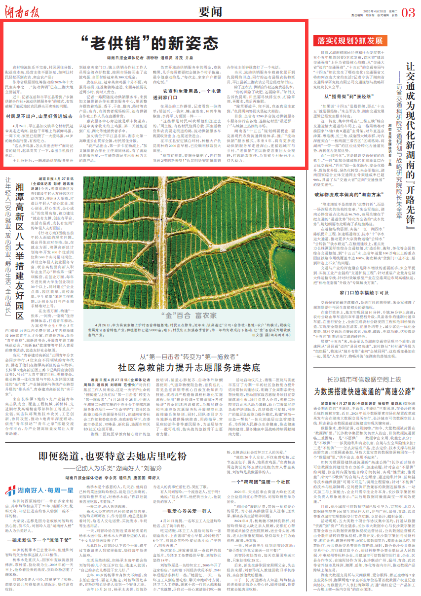 湖南省“十五五”规划纲要提出,要完善现代农资流通网络体系,推广“流动供销”服务模式。未来5年,将有更多流动供销服务车走进深山,连接起城市与乡村。“老供销”正以新姿态重回大众视野,扛起助农重任,为我省乡村振兴注入持久动力。