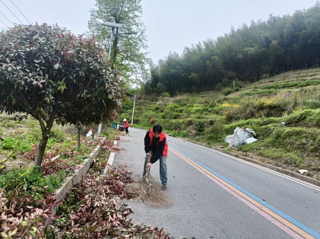 活动现场,党员志愿者们身穿红马甲,手持扫帚、簸箕、修枝剪、绿篱机等工具,对村内主次干道、公共活动场所及旅游沿线进行全面清理,重点清除积存垃圾、枯枝杂草,并对道路两旁、观景台周边的树木进行规范修剪。大家不怕脏、不怕累,分工协作、默契配合,共清理各类垃圾20余袋、修剪树木近100株,既消除了安全隐患,又提升了景观效果。