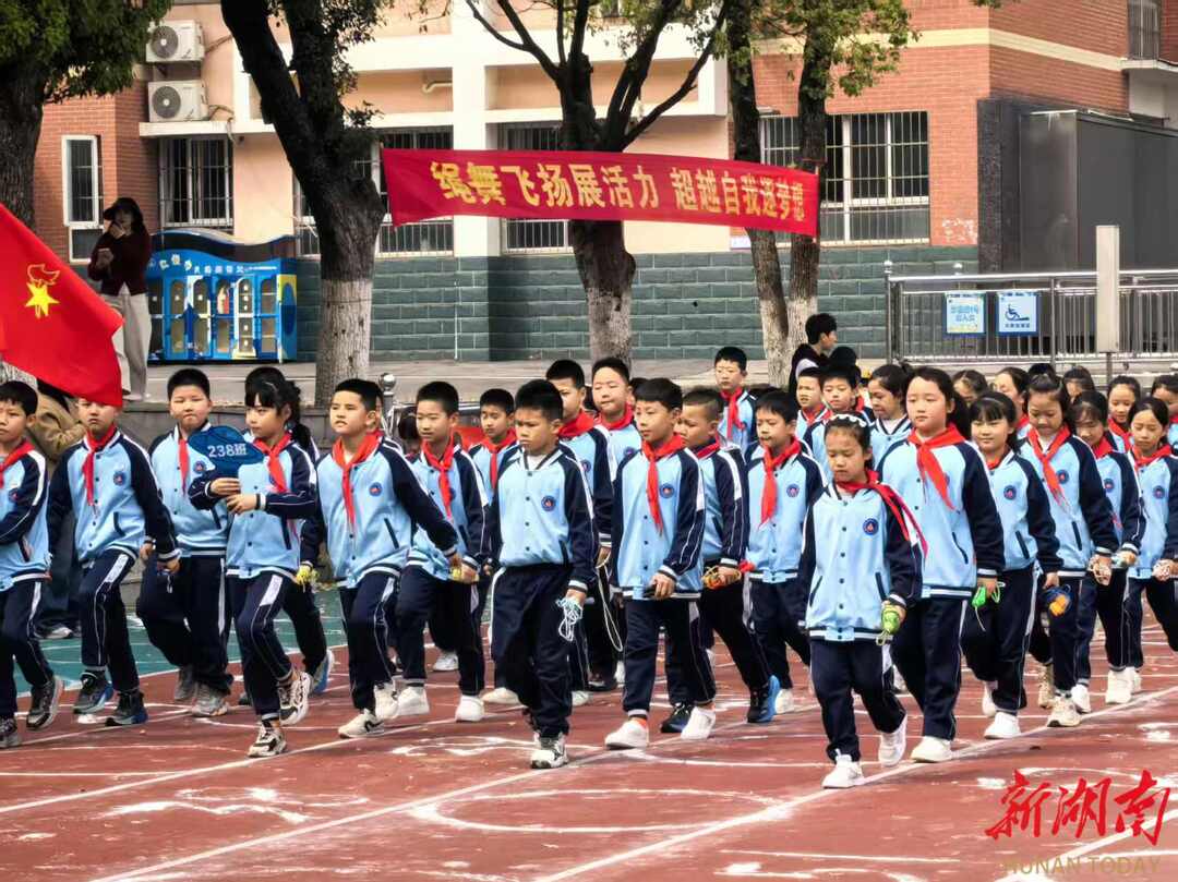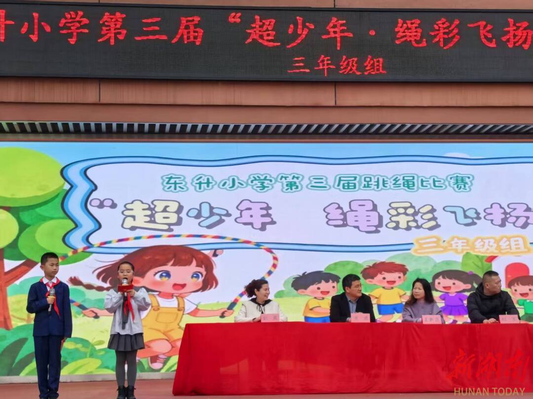 连日来,岳阳市岳阳楼区东升小学先后举办三年级跳绳比赛、二年级韵律操比赛及首届体育教师基本功大赛,将阳光体育活动推向新高潮。
