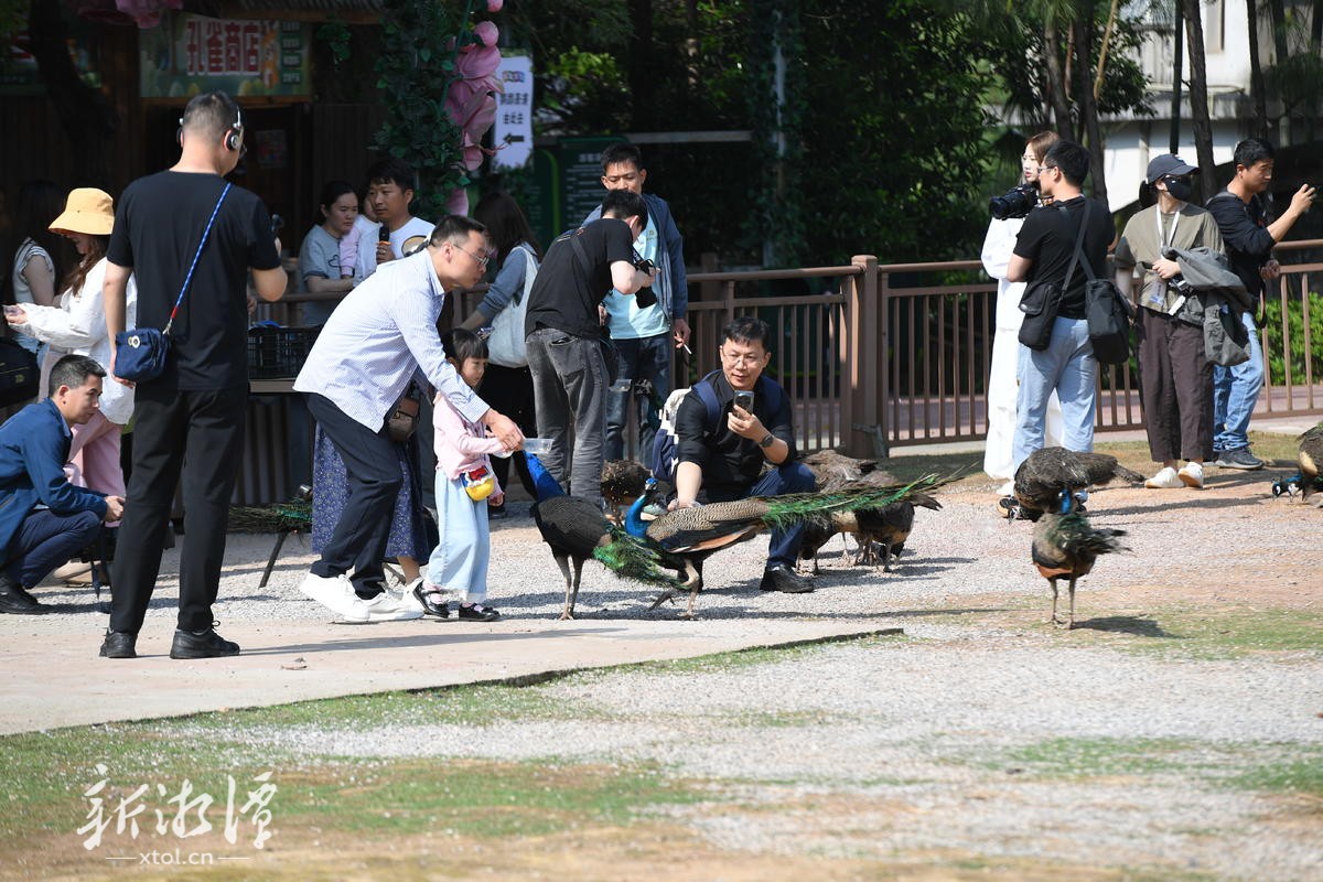 媒体记者与游客一同在盘龙大观园动物乐园参观。(陈旭东 摄)