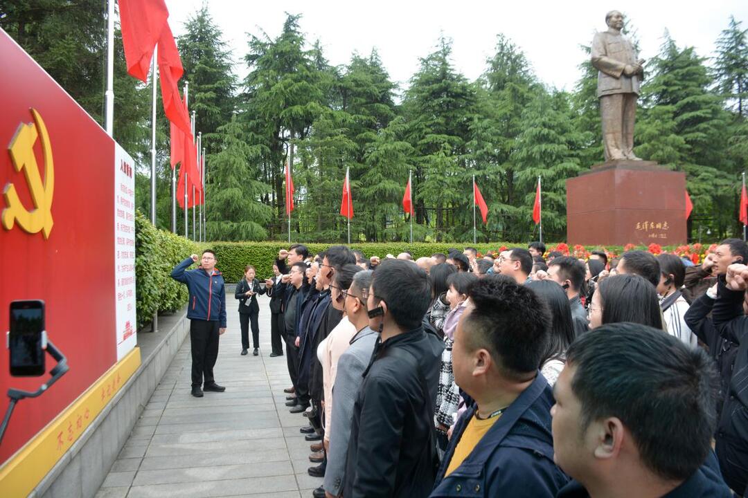 (学员们在毛泽东铜像广场重温入党誓词)
