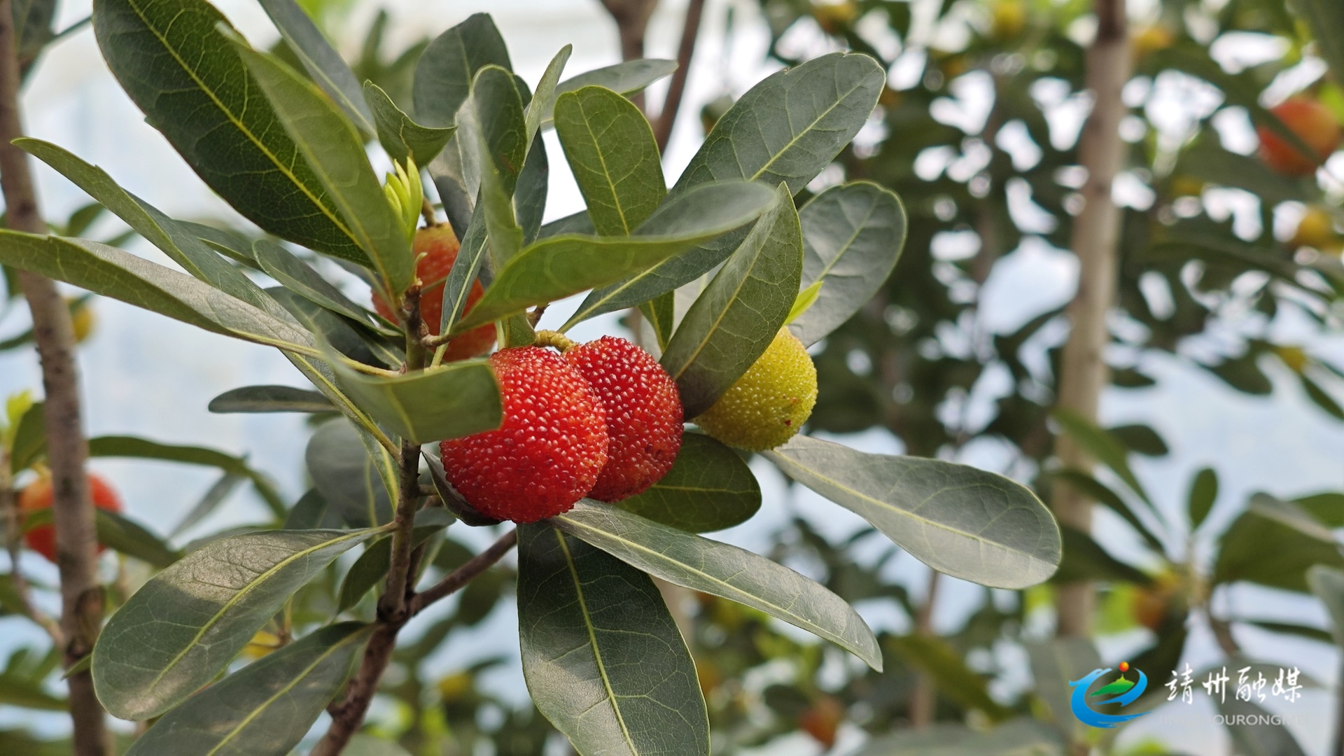 ▲双膜温控大棚中杨梅陆续转红(蒲湘萍 摄)