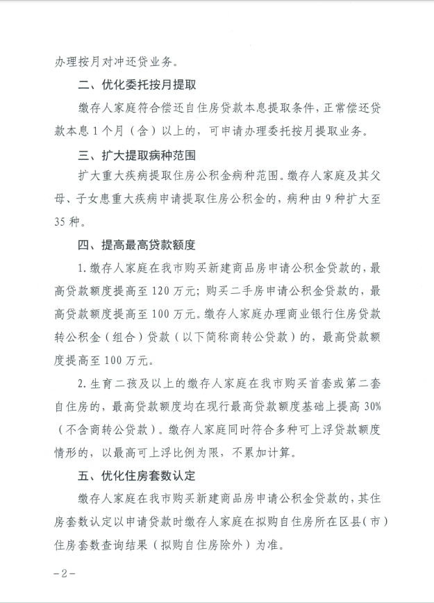 通知还指出,将优化委托按月提取。缴存人家庭符合偿还自住房贷款本息提取条件,正常偿还贷款本息1个月(含)以上的,可申请办理委托按月提取业务。同时,扩大重大疾病提取住房公积金病种范围。缴存人家庭及其父母、子女患重大疾病申请提取住房公积金的,病种由9种扩大至35种。