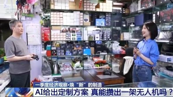总台央视记者张丛婧:这就是我们刚刚组装出的一架无人机,所有配件都是在这个楼里买到的,从一堆零散配件到这样的整机,只用了不到两个小时的时间。现在我们就来试一下它的功能到底如何,看它能不能飞起来。