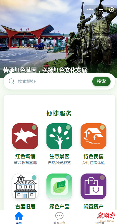 该小程序是平江县打造的生态产品资讯综合推广平台,采用o2o(Online To Offline线上到线下)模式,通过线上展示吸引消费者,并引导至线下实体店消费体验。平台涵盖红色场馆、生态景区、特色民宿、古屋旧居、绿色产品、闲置资产等六大板块,以“图文+地址+联系方式+导航”的一体化形式呈现,实现“线上引流、线下消费”闭环。截至目前,已有82家企业、场馆、村社153款产品入驻。