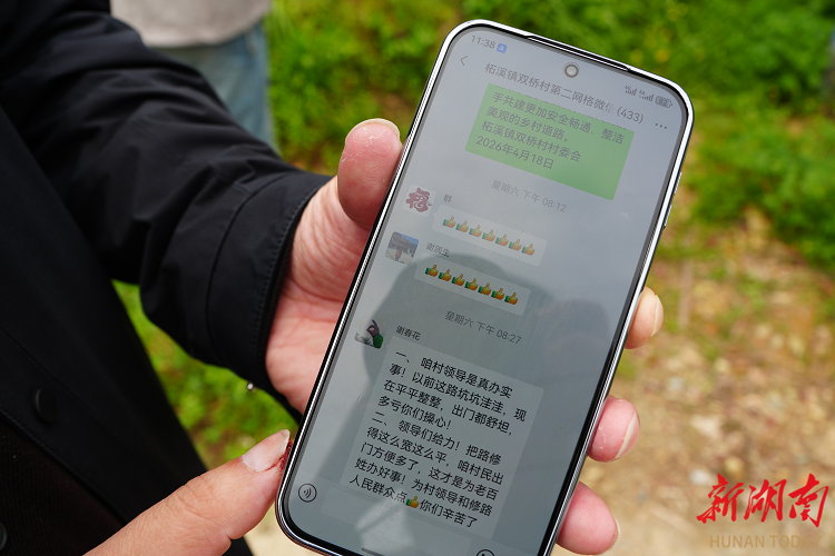 道路硬化过程中,双桥村充分发挥党建引领作用,广泛发动群众参与,引导沿线村民主动清理路面及两侧杂物、杂草,共同维护良好的施工环境。当谢田辉在“柘溪镇双桥村第二网格微信群”里发布“关于做好柘溪镇双桥村黄回公路道路硬化前期准备工作的通知”时,立即得到了村民们的广泛点赞和积极响应,更有村民主动提出无偿拆掉自家紧邻公路的杂物间,为公路扩宽“腾地方”,用实际行动支持公路建设。