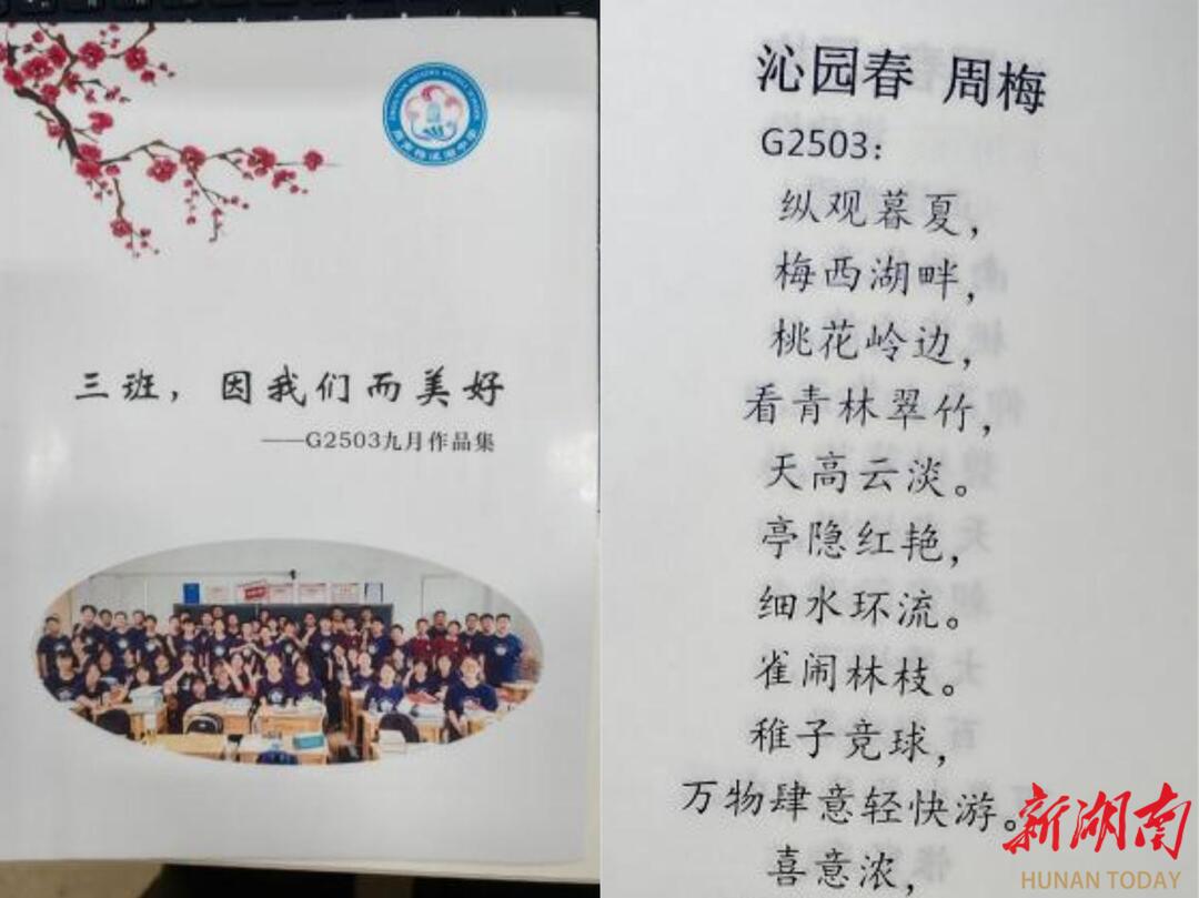 高中语文课本的第一课是毛泽东的《沁园春·长沙》,带领学生们学完后,她一定会布置一项作业——融入自己的情与思,写一首《沁园春・周梅》。学生把校园四季、少年志向、班级故事融入词中,她逐字逐句悉心批改,反复打磨,再将佳作整理成铅字作品,郑重留存。