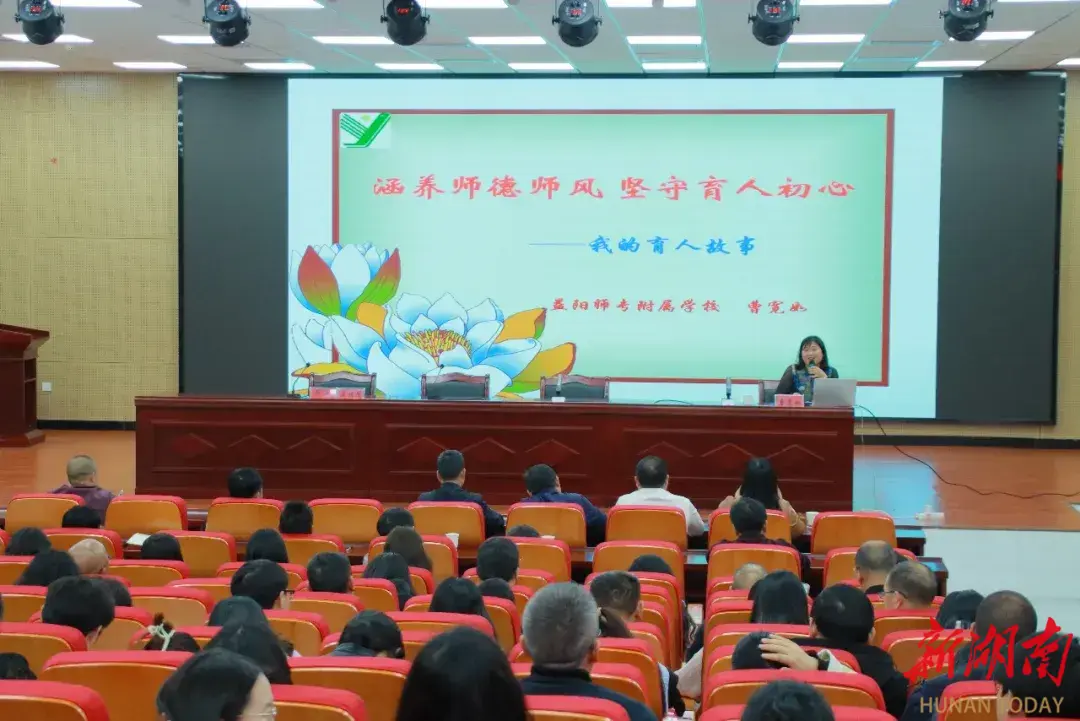 会议特邀“湖南省优秀教师”、益阳师专附属学校正高级教师曹宽如开展《涵养师德师风,坚守育人初心》专题讲座。曹宽如结合自身多年教育教学实践经验,以四个真实鲜活的育人小故事为载体,用质朴的语言、真挚的情感,生动讲述了自身在教书育人过程中的所思所行、所感所悟,深入浅出地阐释了新时代师德师风的核心内涵,为在场教师分享了涵养高尚师德、践行育人使命的实用方法与实践路径,让全体教师接受了一场深刻的师德洗礼,进一步明晰了育人初心与责任担当。