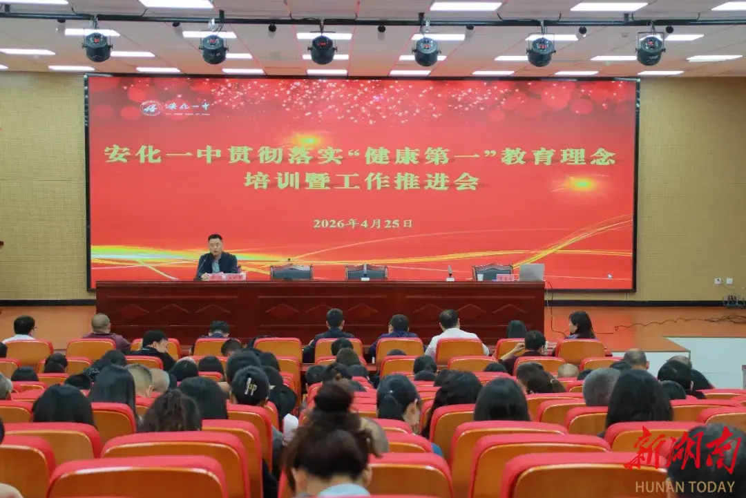 新湖南客户端4月28日讯(通讯员 肖剑 蒋淑妮)为全面践行“健康第一”的教育理念,持续强化师德师风建设,夯实学校育人工作根基,4月25日,安化一中贯彻落实“健康第一”教育理念培训暨工作推进会正式召开。本次会议由学校党委副书记、校长吴炜主持。