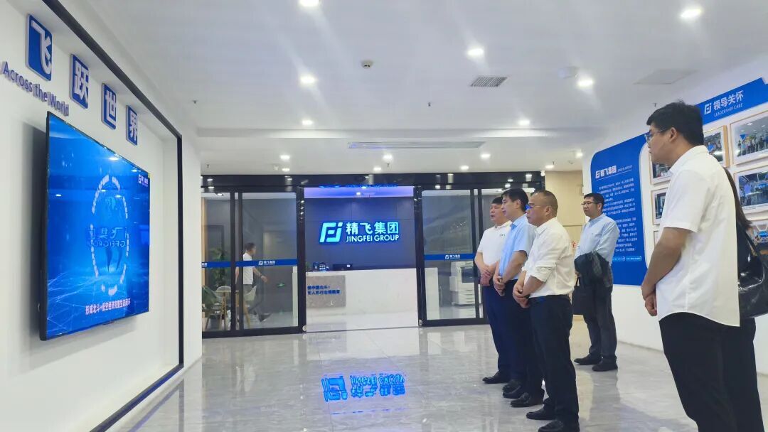 考察团一行在龙永坚董事长的引导下,首先参观了精飞集团运营中心展厅。展厅内,企业发展历程墙以时间轴形式呈现了精飞从初创企业到行业领军者的蜕变。多项国家级荣誉证书与专利技术展示彰显了企业的技术实力。