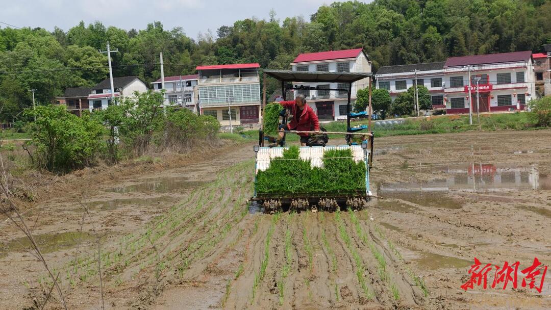 新湖南客户端4月28日讯(通讯员 嘉鹏 旭峰 仲香 玖华)“到今天为止,每天6台插秧机下田,已机插400多亩,还有300多亩早稻、100亩再生稻,要等到‘五一’后才能完成种植任务。”57岁的刘双寿驾驶着插秧机说,“今年3月14日浸种催芽,再进入大棚摆盘育秧,到4月18日开始机插。除了本村的500亩面积,还有金鑫等2个村的700亩种植任务,虽然辛苦,但值!”