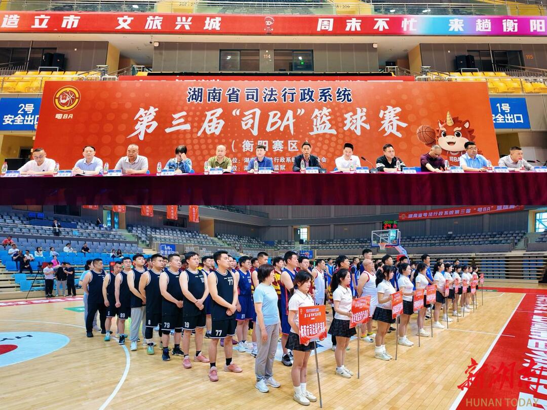 湖南法治报·新湖南客户端讯(通讯员 刘阳)4月26日,由省衡州监狱承办的全省司法行政系统第三届“司BA”篮球赛四赛区(衡阳),在衡阳市全民健身中心篮球馆拉开战幕。省厅系统工会一级高级警长阮宏伟宣布开赛,衡州监狱党委书记、监狱长王毅致欢迎辞。